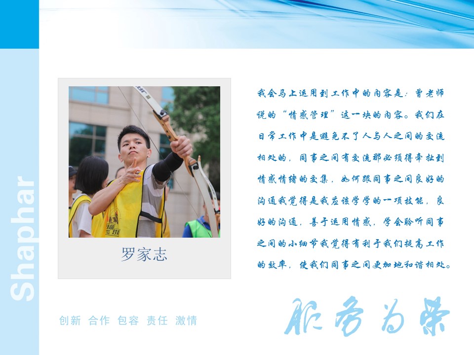 本次培训的课程均由公司资深业务专家针对“一名合格的基层管理干部”的要求提取而出的干货,旨在让学员能够快速吸收干货,了解储运部的整体操作,为六月份的轮岗培训奠定基础。
